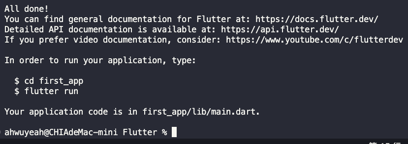 要建立Flutter的資料夾底下,輸入flutter creat first_app - 如果創立成功後在你該資料夾底下應有一個名字叫做