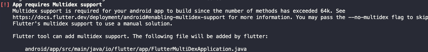 要在 Flutter 應用程式中啟用 Multidex 支援,你需要在你的 android/app/build.gradle 文件中做一些修改。以下是具體的步驟: