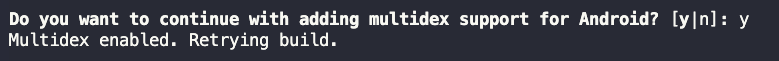 這樣就可以啟用 Multidex 支援了。請注意,如果你的 minSdkVersion 是 21 或更高,則不需要添加 implementation 'com.android.support:multidex:1.0.3'
