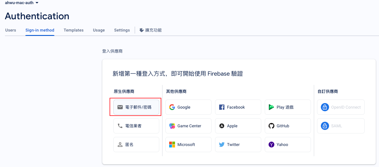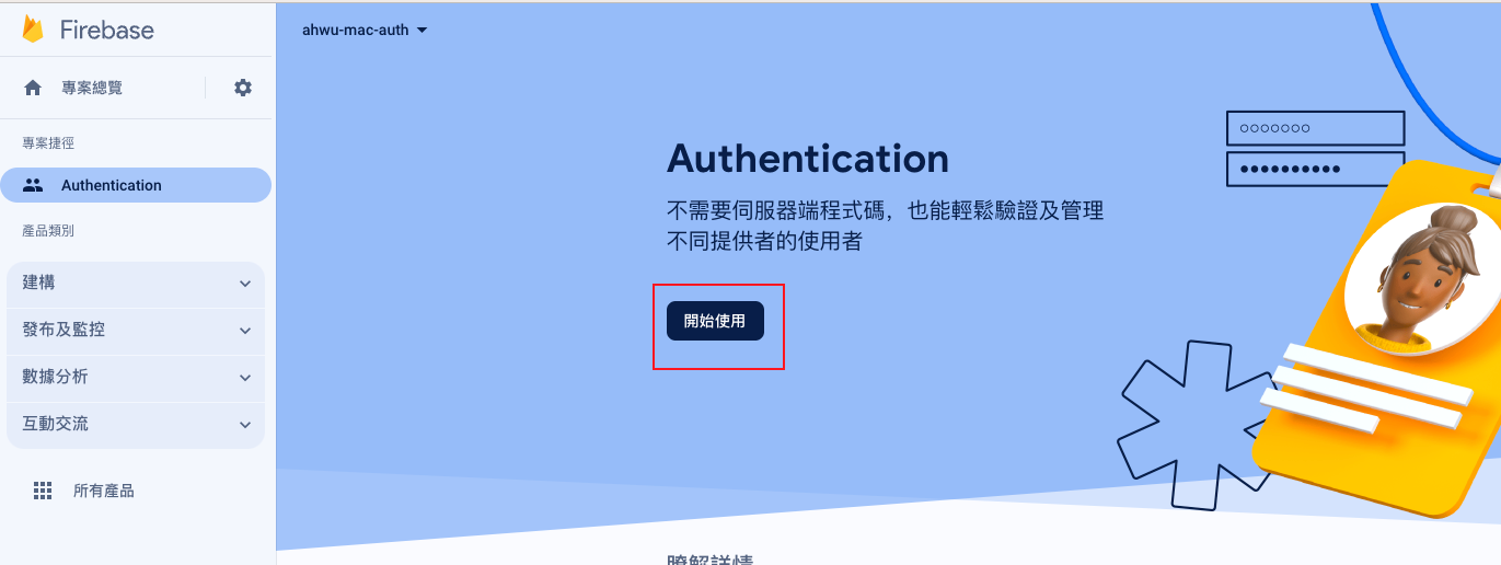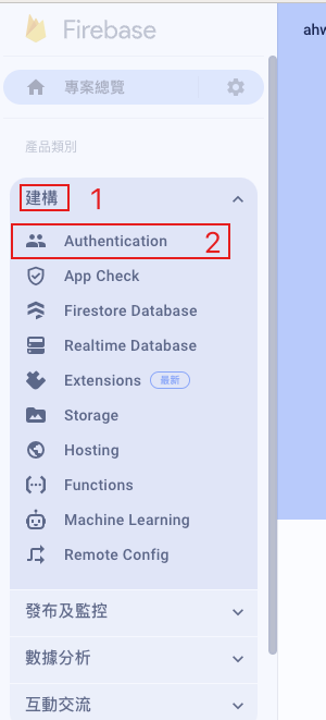 • 左側菜單點選建構,在點選Authentication