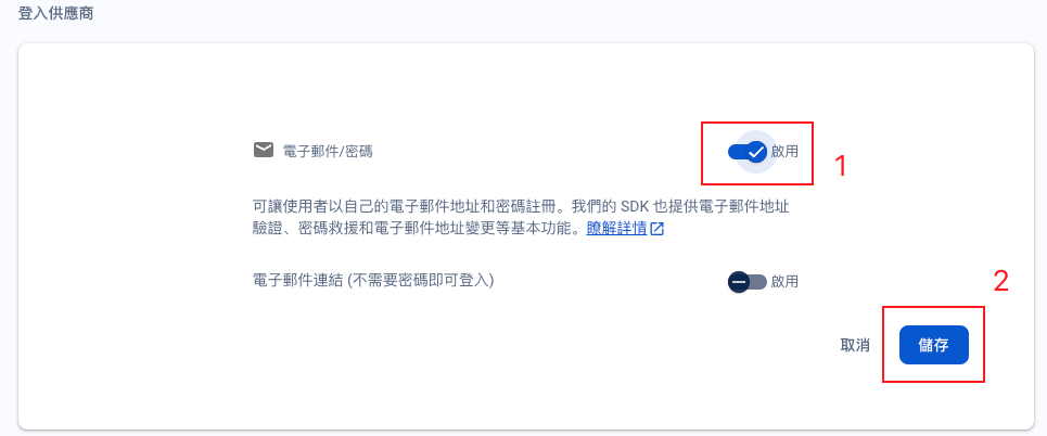 • 選擇電子郵件/密碼